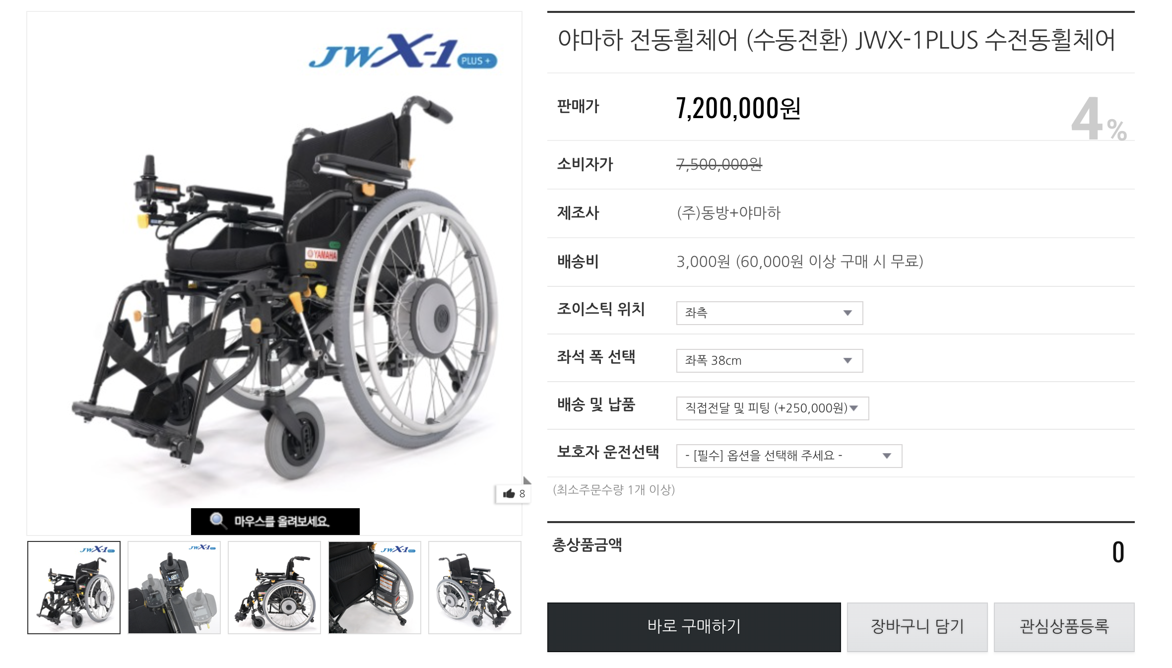 이 모델은 맞춤이 어려워, 상황에 따라 별도 수동휠체어 구매 필요 |
