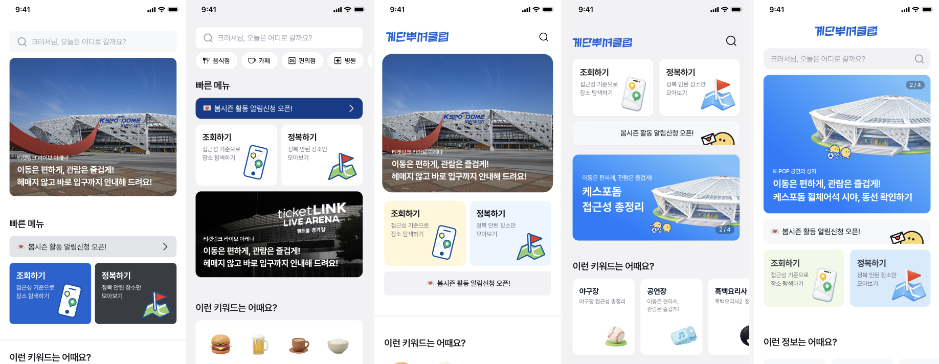 콘텐츠도 마찬가지였습니다. 야구장 접근성, 공연장 동선 같은 콘텐츠를 열심히 만들었는데, 앱 안에서 그걸 보여줄 영역 자체가 없었어요. [메뉴] 페이지에 넣어뒀지만 눈에 띄지도 않았고요. 막상 뉴스레터랑 인스타로는 봤지만 앱에서는 확인이 어려운거죠.